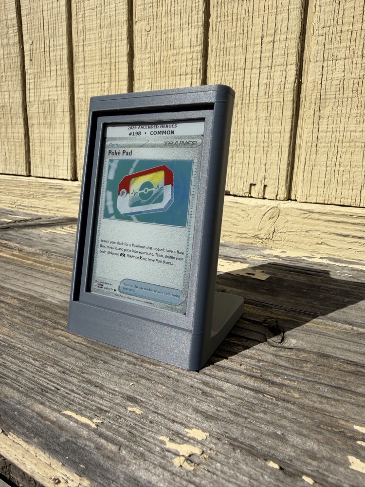 Designed by Costa Mesa Tech Solutions, the InkSlab is a sleek, 3D-printable enclosure that brings your favorite Trading Card Game art to life. Powered by a Raspberry Pi and a 7-color E-ink display, it dynamically rotates through card art, set information, card numbers, and rarity—all housed in a premium, screwless case.